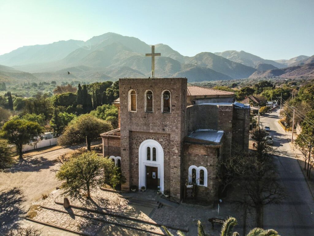 Lluego visitamos la Iglesia San Antonio de Padua, nuestro recorrido continua por una degustación de salame y queso de Colonia Caroya, en un lugar con vista de altura de Capilla del Monte y sus cerros.